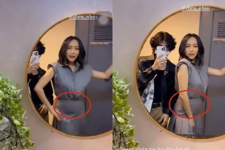 Về phần Diệu Nhi, nữ diễn viên Chiến Dịch Chống Ế vô tình để lộ một đặc điểm được cho là dấu hiệu của các bà mẹ bỉm sữa sau khi sinh con. Trong clip được bạn bè đăng tải, Diệu Nhi diện váy bó sát và vô tình để lộ vòng 2 nhô lên thay vì che chắn bằng cách chụp ảnh cận mặt hay diện áo rộng như thường lệ.
