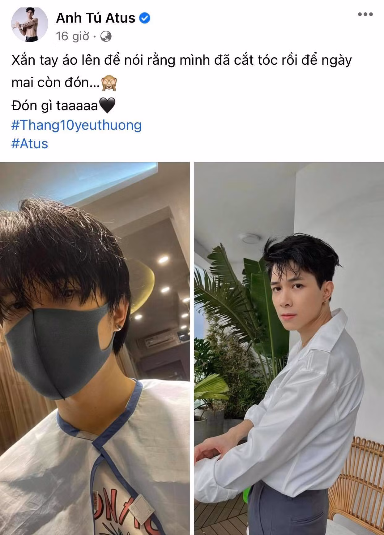 Thế nhưng mới đây, cặp đôi liên tục tung "hint" khiến dân tình không khỏi "đoán già đoán non". Cụ thể, tối 2/10, Anh Tú tung ảnh diện sơ mi trắng chuẩn soái ca, mái tóc được "tút tát" gọn gàng và đính kèm dòng trạng thái đầy ẩn ý: "Xắn tay áo lên để nói rằng mình đã cắt tóc rồi để ngày mai còn đón... Đón gì ta? Mai là ngày gì ta?".