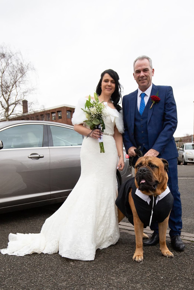 Cặp đôi sống ở Derbyshire, Anh dự định sẽ kết hôn vào tháng 5 tới, nhưng vào tháng 12 vừa qua, Brucie đã được đưa đến bệnh viện với bệnh tràn dịch màng phổi. Trong khi khám cho chú chó 5 tuổi, bác sĩ thú y phát hiện ra một khối u trong ngực Brucie có kích thước bằng quả bưởi. Bác sĩ thông báo rằng chú chó có thể chỉ còn sống được 4 tháng nữa.