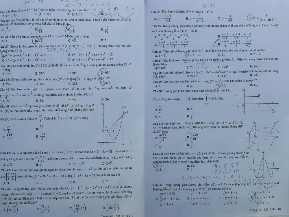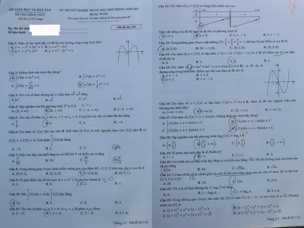 | Đề thi môn Toán mã đề 110 kỳ thi Tốt nghiệp THPT năm 2023. |