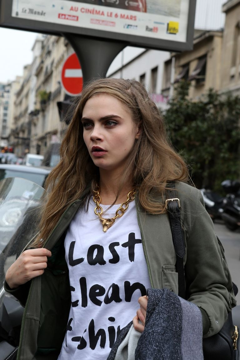 Và chiếc áo phông nguệch ngoạc dòng chữ “last clean T-shirt” (chiếc áo sạch cuối cùng) đã thể hiện chính xác lịch trình kín đến nghẹt thở của Cara. “Vâng, đúng là thế thật đấy, tôi chẳng có lấy thời gian mà giặt đồ nữa cơ, mà đừng quan tâm làm gì, ngày nào tôi chẳng mặc đồ mới trên sàn diễn cơ chứ!”.
