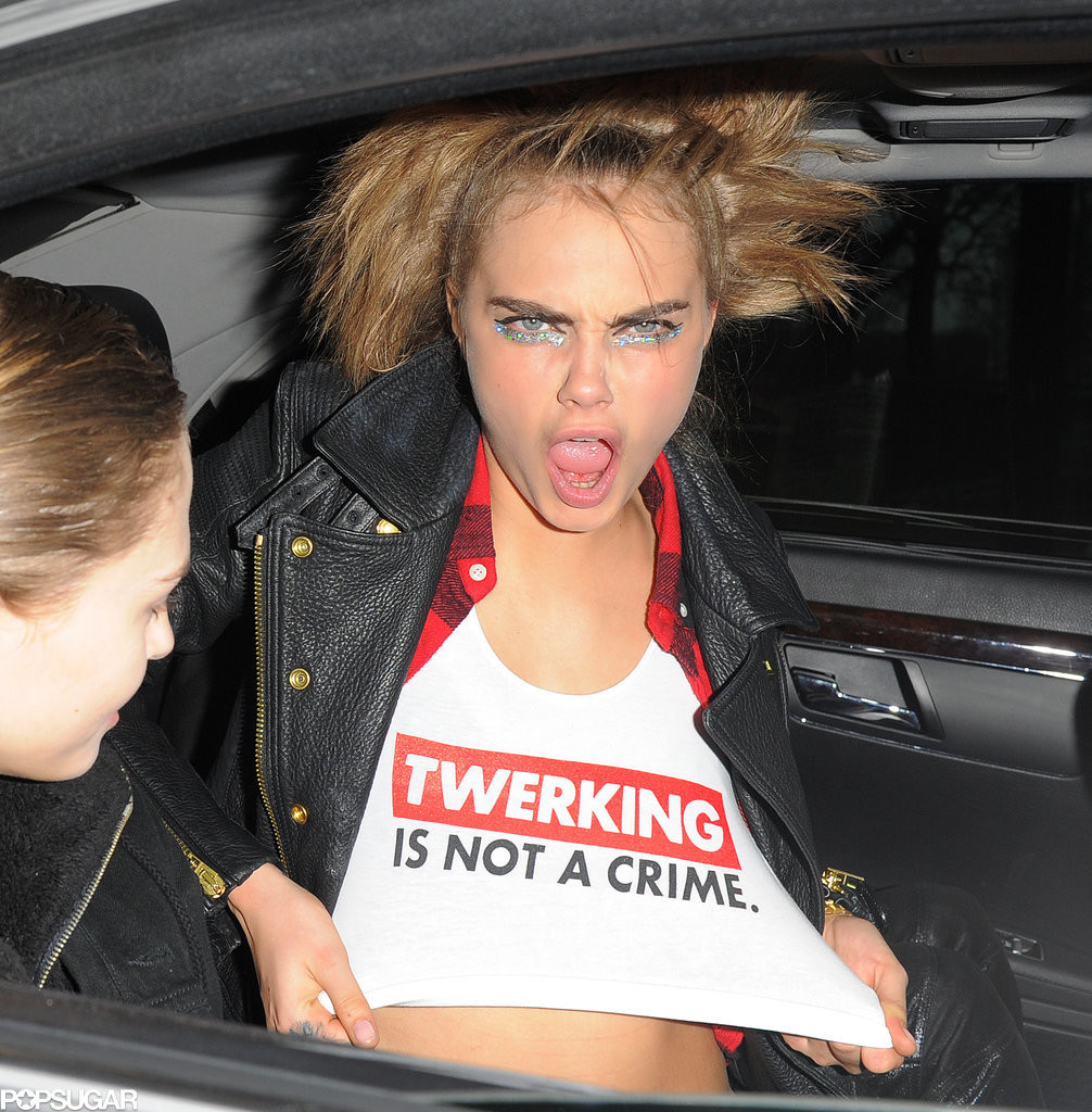 Cara cũng nổi tiếng là quậy điên đảo ở các buổi party. Nàng đã từng lên tiếng bảo vệ cô bạn Miley Cyrus đang bị những lời chỉ trích bủa vây bằng cách khoe ảnh chụp mặc áo crop-top ghi rằng “Twerking is not a Crime” (nhảy Twerk không phải là cái tội đâu). Quan điểm của Cara là bạn cứ “xõa” khi nào còn được vui chơi!