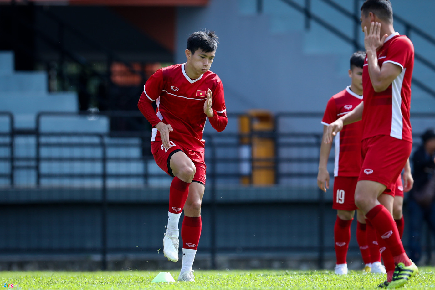 Đoàn Văn Hậu nỗ lực tập luyện. Hậu vệ của CLB Hà Nội sinh năm 1999 nhưng đang là trụ cột không thể thay thế ở hàng thủ tuyển Việt Nam.