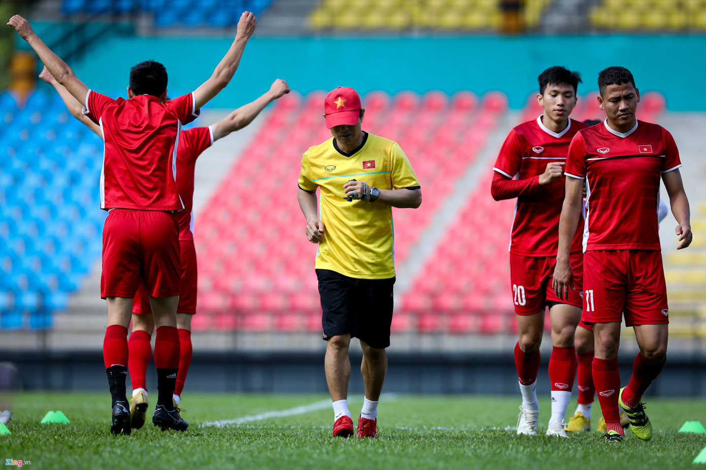 Cách đó vài chục mét, thầy trò HLV Park Hang-seo tập trung toàn bộ vào buổi tập của mình.