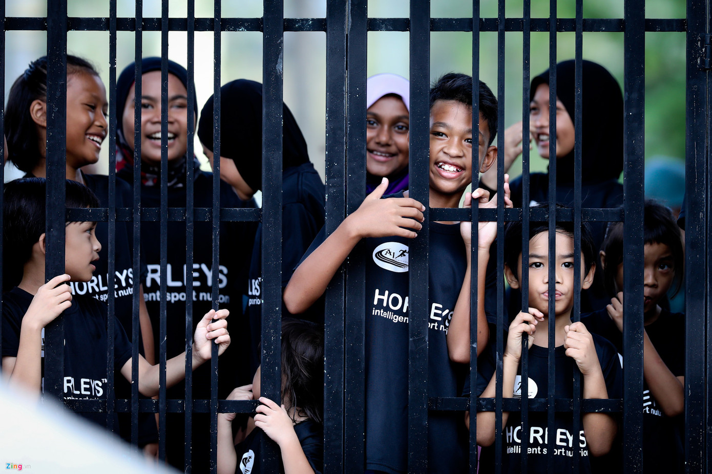 Một số CĐV nhí của chủ nhà xem buổi tập của tuyển Việt Nam. Vài người lớn bắt nhịp cho các em hướng về phía tuyển Việt Nam hô to “Malaysia, Malaysia”.