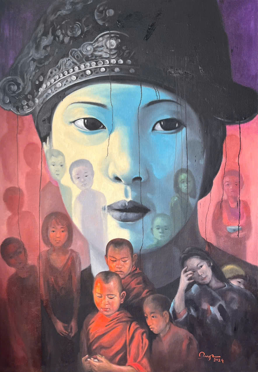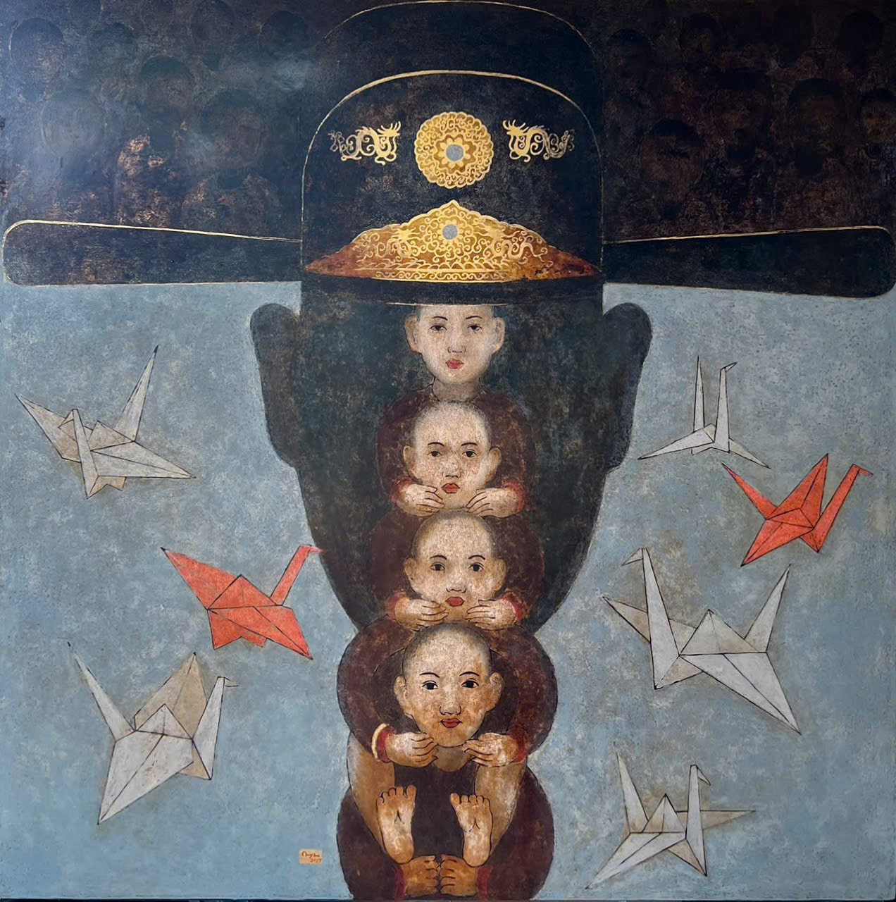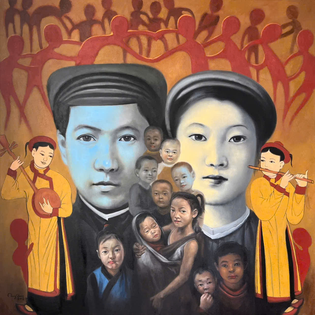 Loạt chân dung biểu hiện - siêu thực hàm chứa nhiều tâm sự giữa hiện tại- khổ đau - hạnh phúc có lồng những hình ảnh từ quá khứ như vua chúa cuối triều Nguyễn và hiện thực (là bao số phận sướng khổ, qua hình ảnh các em nhỏ của nhiều dân tộc khác nhau trên đất Việt). Sự lồng ghép hình ảnh hội hoạ này vừa là sự dịch chuyển nhiều câu hỏi từ hình ảnh thực, sinh động và ấm áp tình cảm cho đến những linh hồn mông lung, vừa là sự băn khoăn trăn trở, vừa có tính hướng đạo.