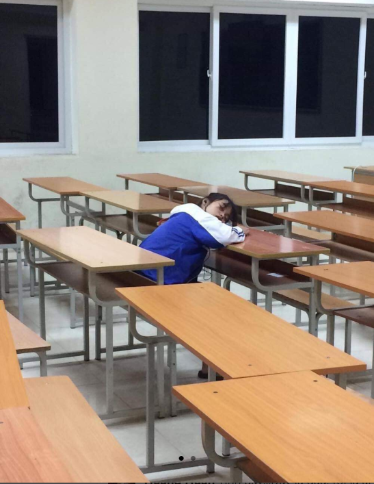 Theo chia sẻ, nhân vật trong ảnh đã hết tiết học từ lúc 3 giờ chiều. Thế nhưng, do ngủ quá say, cô bạn chẳng hề hay biết đã đến giờ tan học và hội bạn bè thì nhân cơ hội này cũng chẳng thèm gọi bạn thức dậy. Và kết quả là, cô bạn này đã ngủ thẳng một mạch đến khi trời tối như hình ảnh dưới đây. Cộng đồng mạng cũng chẳng biết nên buồn cười vì cô bạn này có một hội bạn quá thích đùa hay nên cảm động vì hội bạn này chẳng những để yên cho bạn ngủ ngon lành và chờ đến tận tối để chụp những bức ảnh trên.