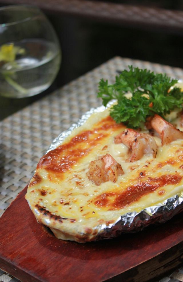 Món này phải ăn ngay thì mới cảm nhận được hết vị ngon của nó. Sau khi được bỏ lò, lớp phomai ở trên sẽ cháy xém vừa thơm lại đẹp mắt. Sức nóng của nhiệt cũng khiến cho phần kem bên trong hòa quyện với tôm. Cắn một miếng đầu tiên sẽ cảm nhận được vị mặn bùi của phomai, sau đó là vị béo ngậy của kem tươi và cuối cùng là vị ngọt thanh của tôm, đặc biệt vị tôm không hề bị lấn át, cùng hương thơm phức, tôm dày chắc thịt khiến bạn cắn ngập răng, còn khi nhai thì thôi, quá là đã miệng luôn.