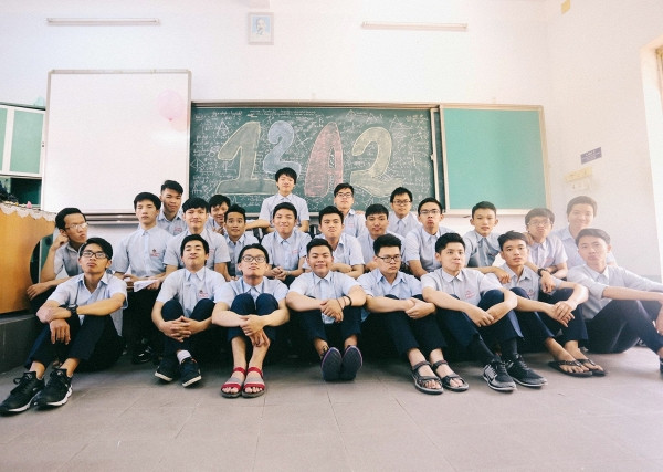 Huy cùng các bạn trong lớp chụp hình vào cuối năm học.