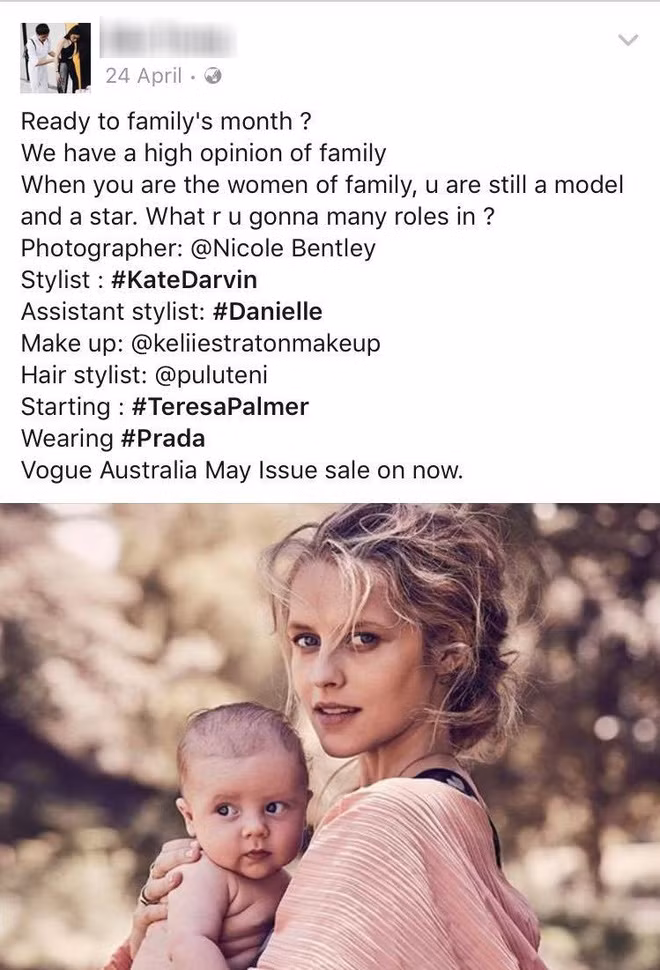 Trong khi, nhiếp ảnh gia đang làm việc cho Vogue của Úc lại không hề nhắc gì đến B.T khi giới thiệu ê-kíp sản xuất trang bìa.