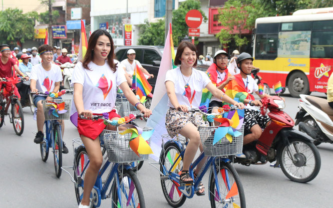 Buổi đạp xe diễu hành có sự tham gia của đông đảo thành viên cộng đồng LGBT Việt Nam.