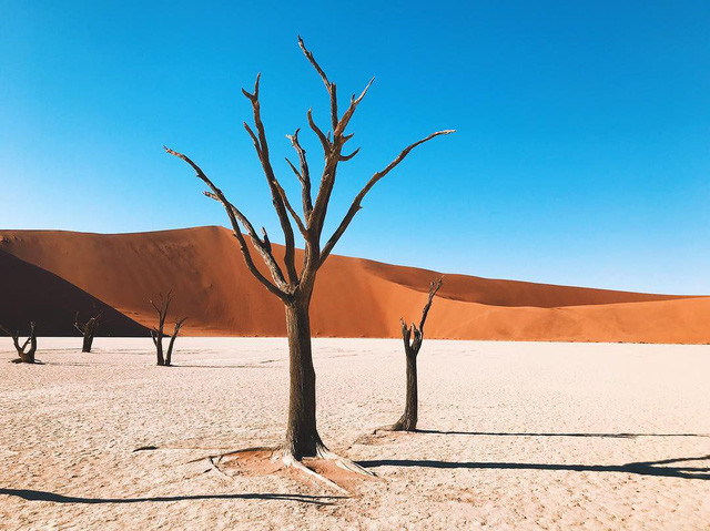 Cát trắng, cồn cát đỏ và bầu trời trong xanh, Sossusvlei là một trong những nơi đẹp nhất của Namibia. Nằm ở sa mạc Namib, bạn có thể thỏa mãn ngắm nghía bốn phía của một mảnh đất không giống bất kì mảnh đất nào trên thế giới. Nó giống như bạn đang đi đến Sao Hỏa khi bước vào khu vực sa mạc này.