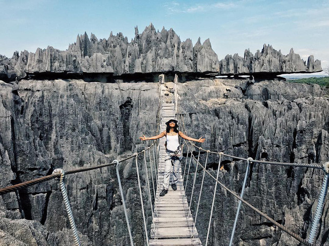 Đi bộ xuyên rừng khoáng sản của Madagascar có cảm giác như đang đi lạc vào một hành tinh khác. Ở đây có những cột đá vôi hình thành từ gần gần 200 triệu năm về trước, các cao nguyên dốc và cây cầu treo không dành cho những người yếu tim.