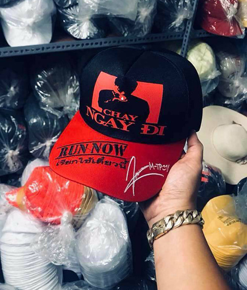 Mũ lưỡi trai ăn theo Chạy ngay đi cũng được nhiều người tìm mua. Với các màu sắc nổi bật như đen, đỏ cùng logo M-TP in lớn, món đồ này giúp người hâm mộ thỏa mãn việc mặc "chất" chẳng kém Sơn Tùng.