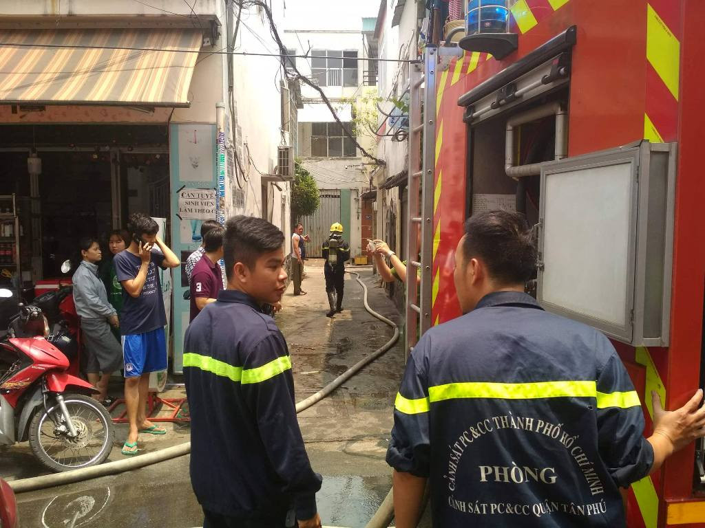 Nhận tin báo, Phòng Cảnh sát PCCC quận Tân Phú nhanh chóng điều 5 xe cứu hỏa và hàng chục chiến sĩ đến hiện trường dập lửa.