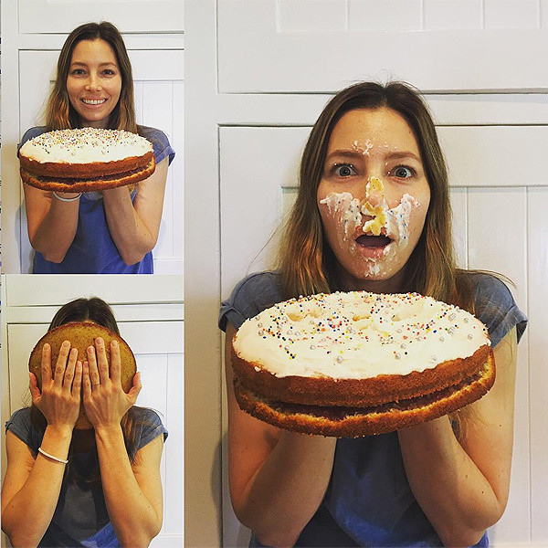 Nhân dịp cán mộc 1 triệu người theo dõi trên Instagram, Jessica Biel đã có màn ăn mừng khá là tốn giấy lau, tốn nước rửa. Đó là ụp nguyên một cái bánh kem to bự lên mặt!