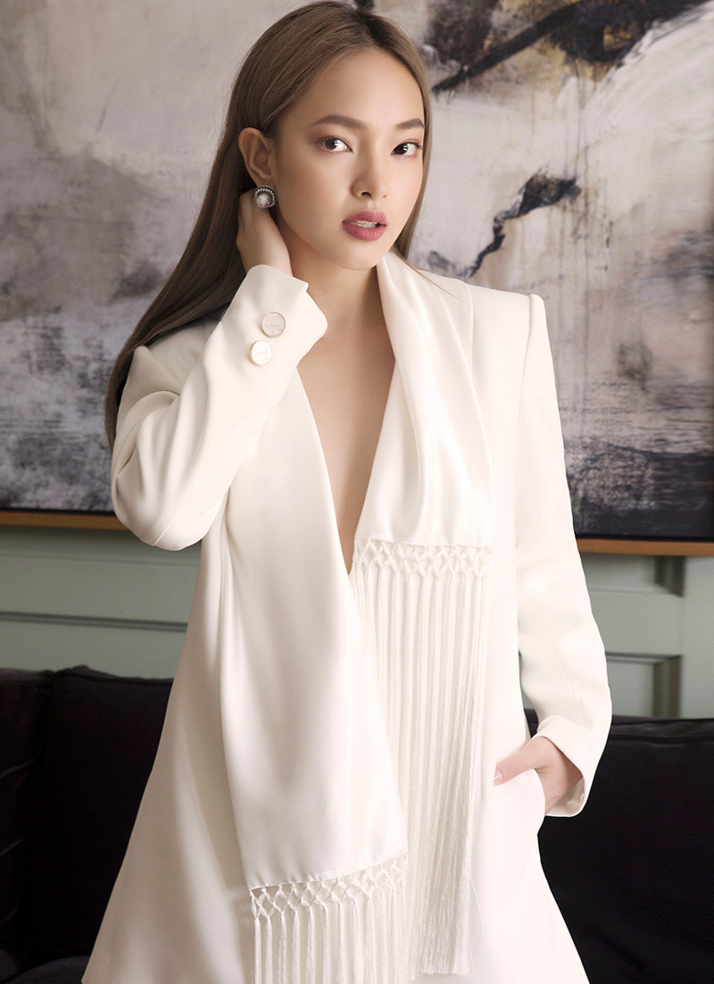 Cách cô nàng tiết chế trong việc sử dụng phụ kiện như hoa tai, nhẫn, kết hợp cùng kiểu tóc màu khói thời thượng và cách trang điểm nhẹ nhàng tự nhiên, càng giúp tôn vinh gương mặt đẹp lạ không góc chết cũng như đôi môi hờ hững duyên dáng.