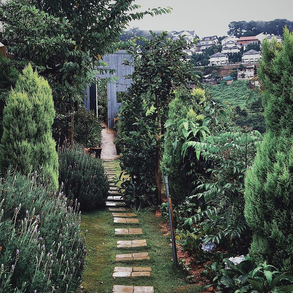 Đáp lại sự kiên nhẫn khi vượt dốc - “đặc sản” của Đà Lạt - chào đón tụi mình là những khóm cây xanh phủ từ lối đi cho đến chiếc cổng chào. Khu vườn mùa Hè hiện ra thật sự quyến rũ.