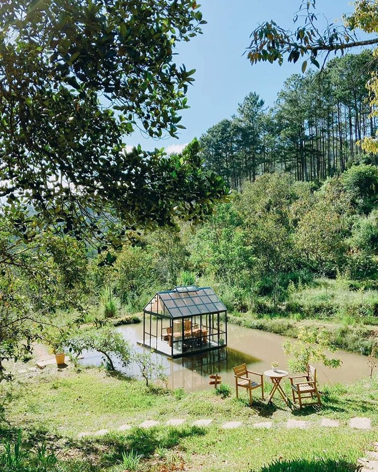 Tiệm nằm dưới thung lũng bên đường đèo Prenn thơ mộng với rừng thông trải dài hơn 10 km. Vượt qua những con dốc đặc trưng của Đà Lạt, bạn sẽ ngỡ ngàng khi đặt chân tới tiệm cà phê có cái tên rất yêu: Đợi một người. Không gian gần gũi với thiên nhiên, một tổ hợp Homestay & Cafe được thiết kế theo kiến trúc gỗ cổ điển, chắc chắn bạn sẽ mê tít nơi này. Điểm nhấn là gian nhà kiếng nằm giữa hồ gây thương nhớ, tiệm bánh Hoàng Hôn thơ mộng nằm giữa rừng thông mà tầm chiều sương mây phủ kín lối.
