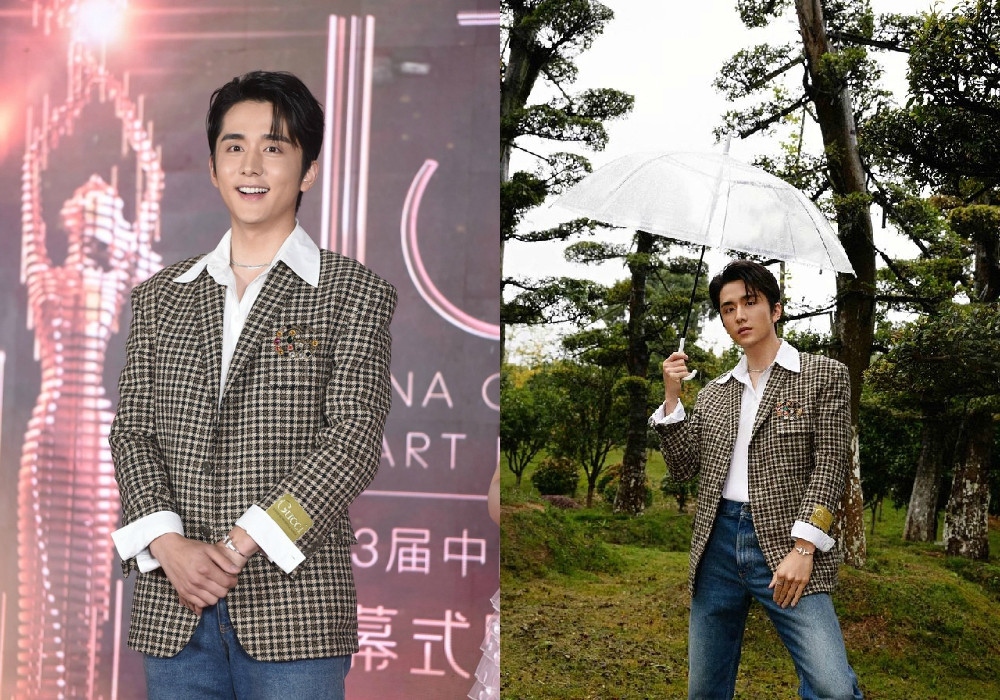 Trong lễ trao giải Kim Ưng mới đây, mỹ nam của điện ảnh Hoa ngữ Trương Tân Thành cũng diện lại nguyên bộ outfit này y chang Jung Kook. Trương Tân Thành cũng có lợi thế chiều cao 1m80, khuôn mặt baby kiểu như Jung Kook, nên cũng được đánh giá là rất hợp với set đồ.