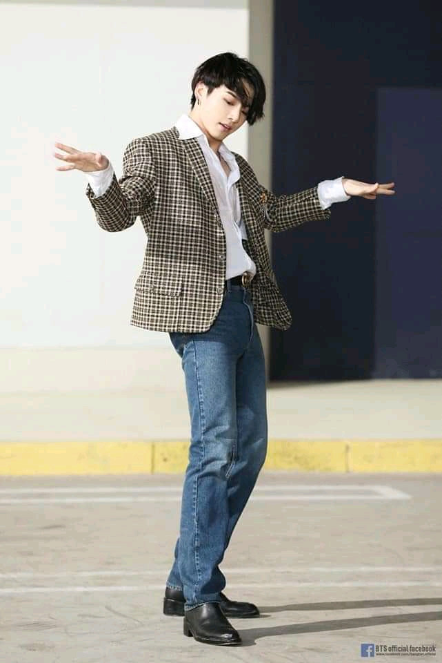 Jung Kook nổi tiếng có vóc dáng siêu đẹp, với chiều cao xấp xỉ 1m80, vai rộng ngực rộng, eo thon, và chân dài thẳng tắp. Bất kỳ món đồ gì khi được Jung Kook mặc đều mang lại hiệu quả thời trang cực kỳ cao. Set đồ này đủ lịch sự để đi dự tiệc, đủ phong cách để làm trang phục diễn, và thậm chí đủ đơn giản để có thể đi dạo phố cũng được.