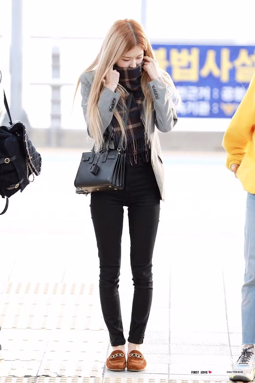 Nhiều nữ idol từng trở nên nặng nề khi đi boots cao cổ đế bằng như thế này, nhưng Rosé thì lại rất hợp. Đó là nhờ cô có đôi chân vừa dài vừa thon, tỷ lệ cơ thể rất đẹp nên đi boots đế thấp vẫn tôn dáng.