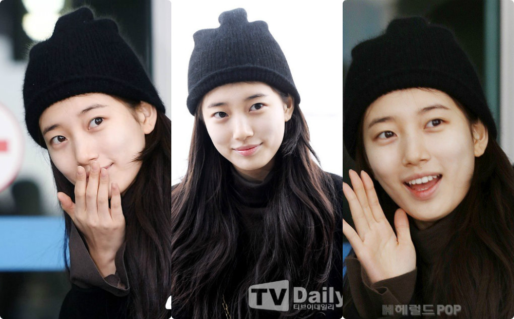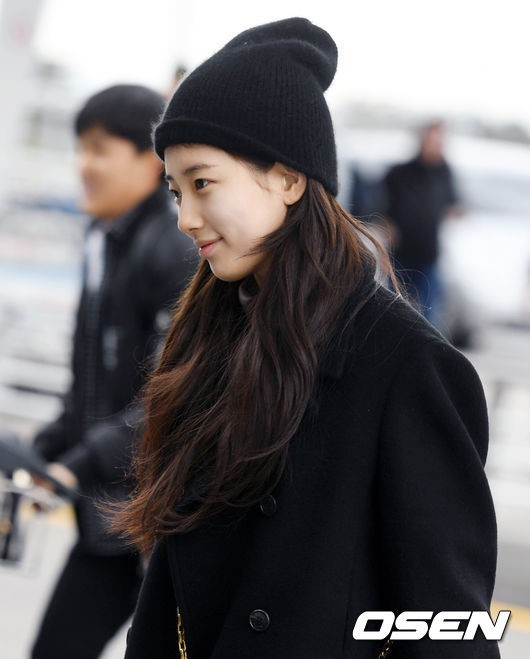 Suzy ra sân bay Incheon để bay sang Mỹ với trang phục đơn giản, tập trung vào việc giữ ấm nhiều hơn là làm đẹp. Đáng chú ý nhất là Suzy không hề trang điểm. Trước đây, Suzy luôn trang điểm nhẹ khi xuất hiện trước đám đông nhưng lần này, cô nàng quyết định khoe mặt mộc 100%.