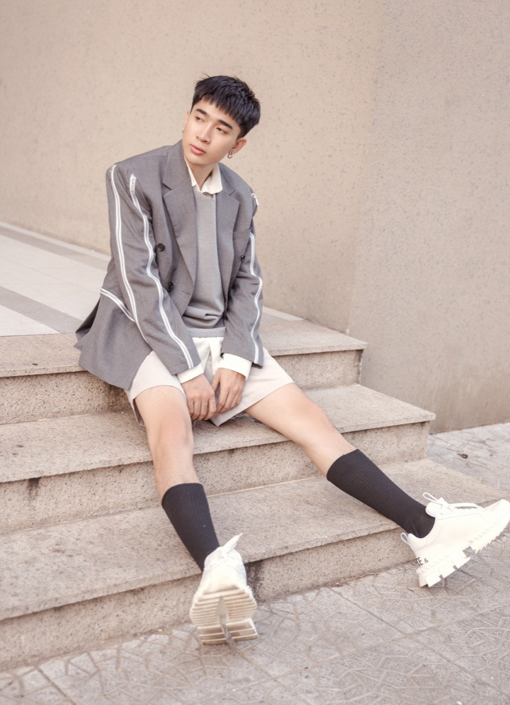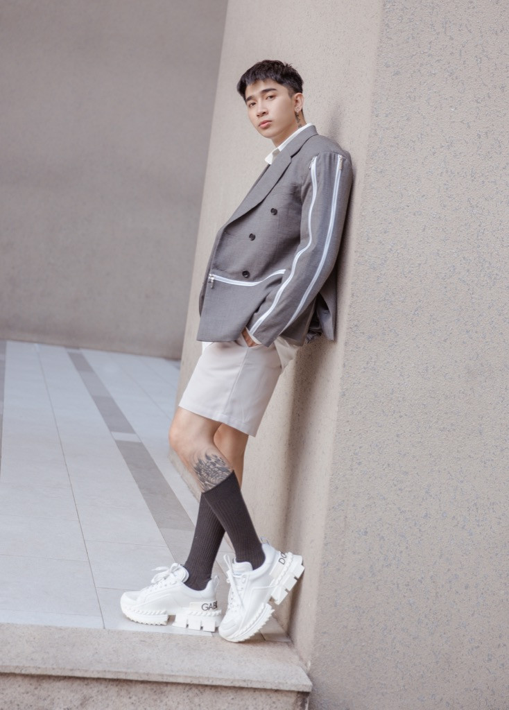 Một chút chỉn chu nhưng không kém phần năng động chính là bộ cánh đậm chất school boy này đây. Chọn tông xám làm chủ đạo, Chi Dân lên ngay một set đồ khá ấn tượng với áo sơ mi kết hợp gile len dệt kim và áo vest. Một điểm đáng chú ý ở set đồ này chính là chiếc quần short màu kem và đôi dad sneakers, 2 item tưởng như không liên quan này nhưng lại tạo “hiệu ứng” rất chất. Bí kíp này cũng có thể giúp không ít nam nhân sở hữu chiều cao khiêm tốn “hack” dáng hiệu quả.