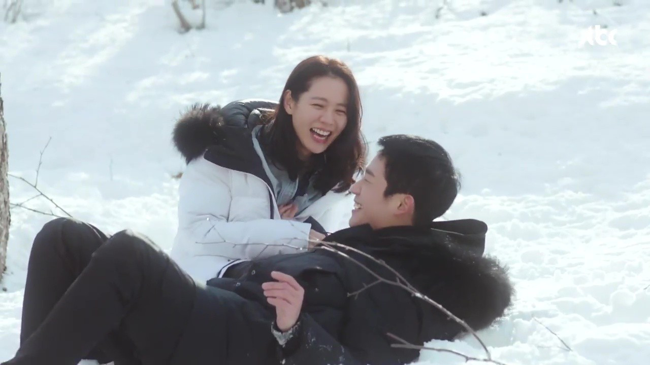 Chưa hết cả hai còn có khoảng thời gian hạnh phúc vô lo ở khu trượt tuyết. Cảnh Jin Ah và Joon Hee vô tư đùa nghịch trên nền tuyết trắng cùng nụ hôn say đắm khiến không trái tim khán giả phải thổn thức vì quá ngọt ngào.