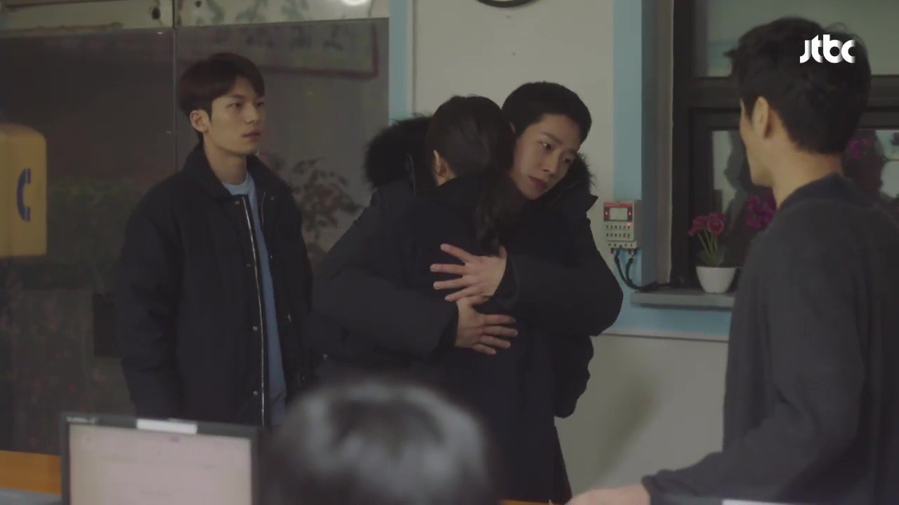 Em trai Jin Ah ngạc nhiên khi thấy bạn mình ôm chị.