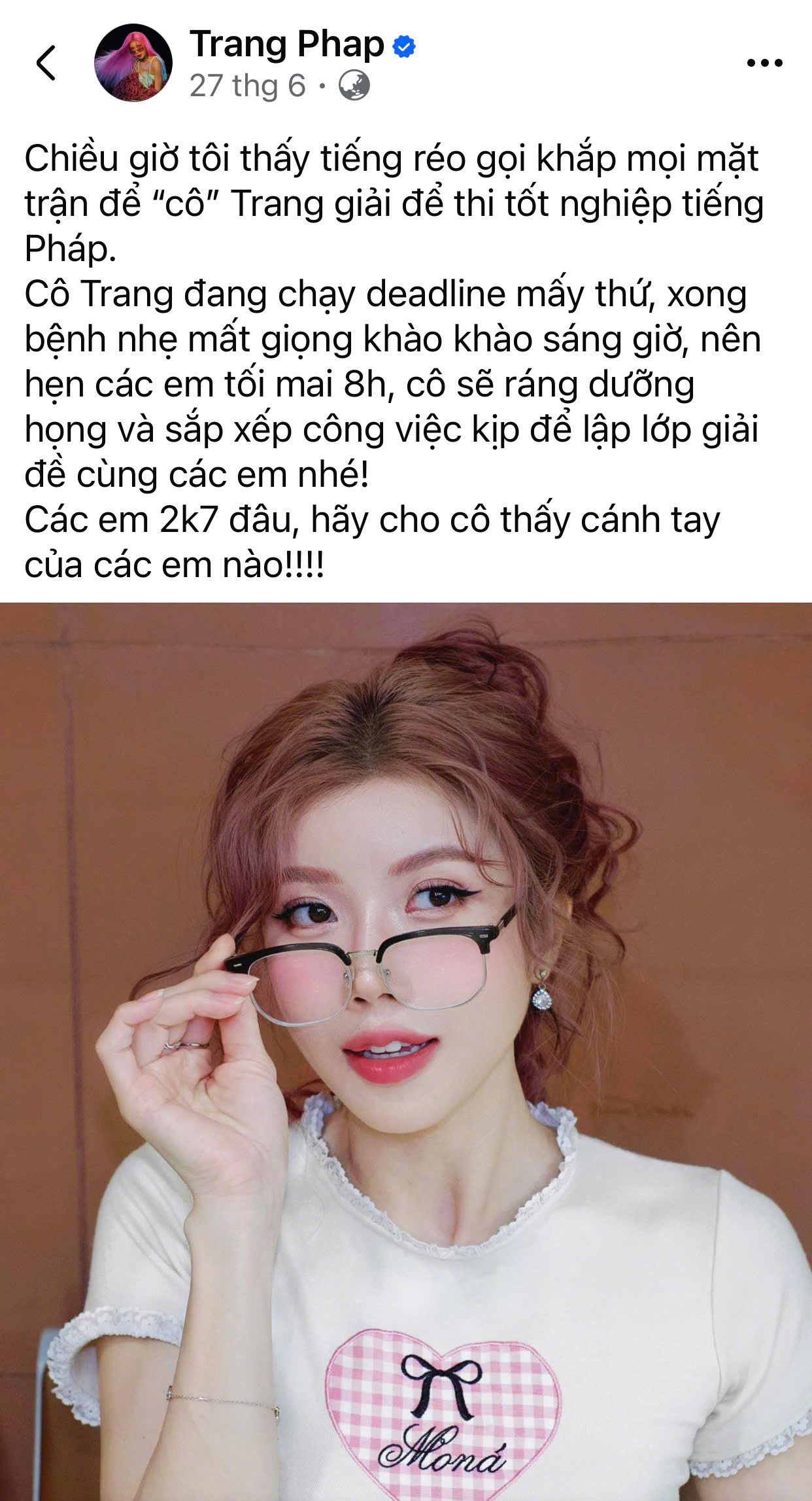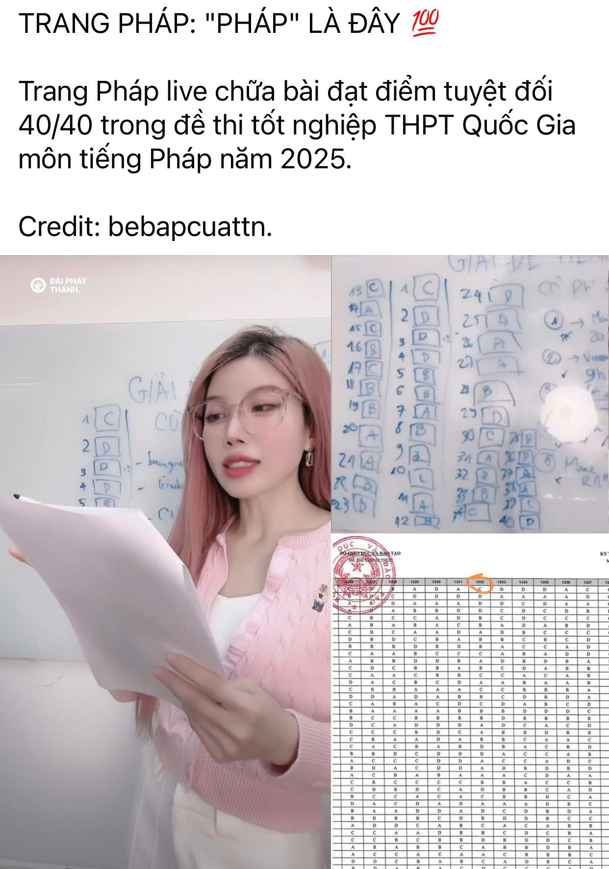 Trang Pháp hóa "cô giáo" giải đề môn Tiếng Pháp. Clip:@ebe.les
