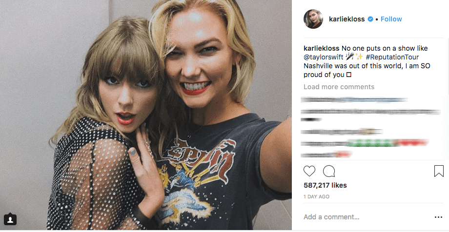 Sự nhiệt tình hò reo mà Karlie Kloss dành cho các màn trình diễn của Taylor Swift, cũng như bức ảnh chia sẻ khoảnh khắc ngọt ngào sau hậu trường của đôi bạn thân đã chính thức “thổi bay” những tin đồn không đáng có xung quanh mối quan hệ hiện tại của họ. Đồng thời, đây cũng là hành động đáp trả khôn khéo của cặp bạn “nhan sắc” dành cho những bình luận không hay về họ trước đây.