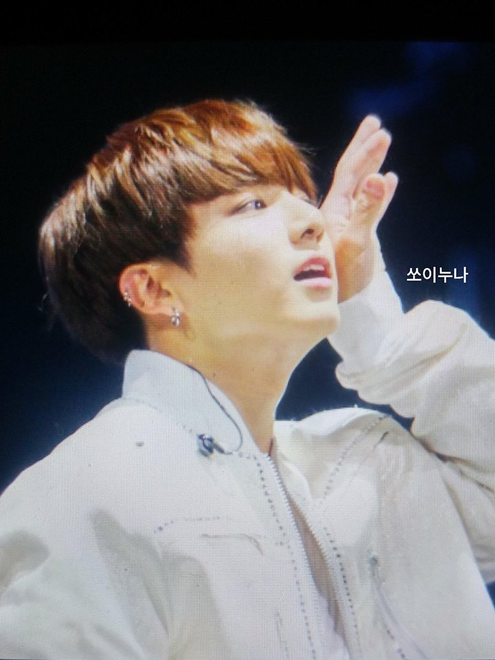 Sau mỗi tiết mục, khuôn mặt Jungkook luôn đầm đìa mồ hôi và em út của BTS sẽ khéo léo đưa tay lên lau như thế này.