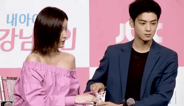Cha Eunwoo hiện đang đóng vai chính trong phim truyền hình My ID is Gangnam Beauty và trong buổi họp báo quảng bá phim, Eunwoo đã ghi điểm tuyệt đối từ một hành động rất nhỏ.
