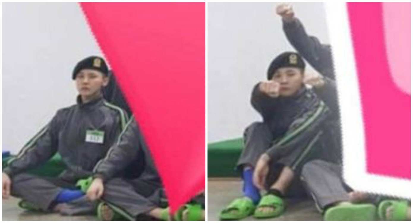 Một tấm ảnh vừa mờ vừa nhòe chụp G-Dragon trong quân ngũ đã lan truyền trên mạng và đủ để dân tình tò mò về đôi dép xanh lá mà G-Dragon và các đồng đội đang đi.