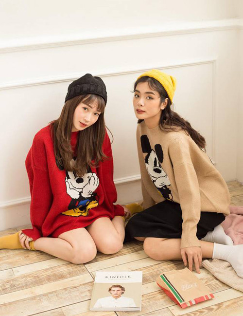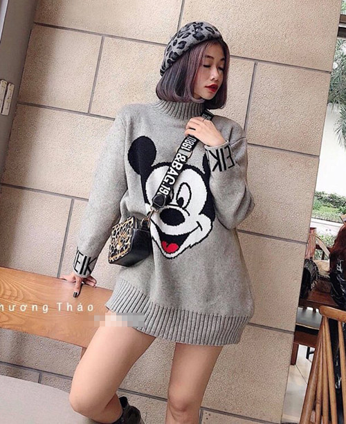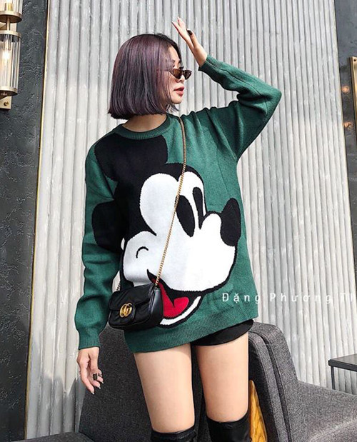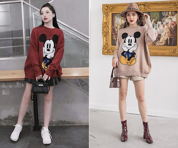 Mùa Đông năm nay chứng kiến sự lên ngôi của mẫu áo len oversized in hình chuột Mickey. Thiết kế đáng yêu này được hàng loạt hot girl lăng xê, đồng thời cũng là mẫu phổ biến nhất trong các shop thời trang, xuất hiện nhan nhản với nhiều mức giá.