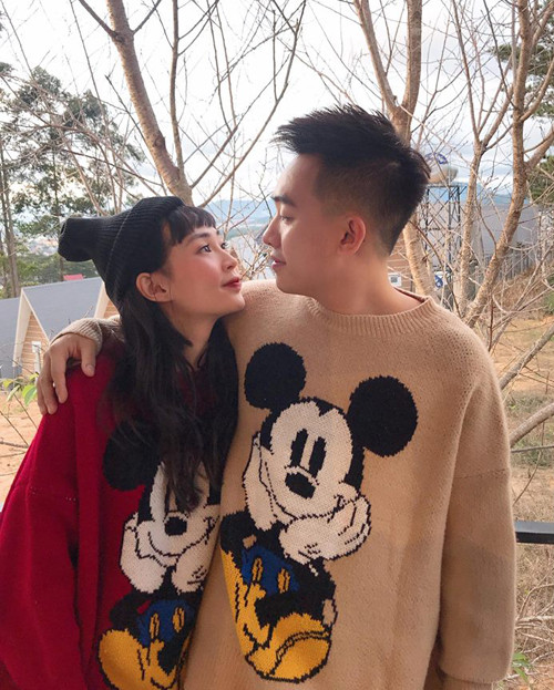 Hot girl Sun Ht là một trong những người đầu tiên đưa áo len Mickey trở thành cơn sốt. Hình ảnh cô nàng diện áo đôi cực đẹp cùng bạn trai Phở Đặc biệt giúp thiết kế được nhiều chàng trai cô gái lùng mua theo.