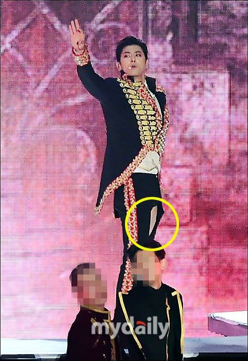Màn tái xuất của Yunho lẽ ra đã xúc động tuyệt đối 100% nếu không có một sự cố bất ngờ "khó đỡ": Yunho bị chiếc quần "phản chủ" ngay trên sân khấu. Sự cố này khiến Cass có một buổi tối cười muốn xỉu, vì đây không phải lần đầu Yunho bị rách quần khi đang biểu diễn. Cứ mỗi lần anh chàng comeback là lại bị mấy cái quần "phản chủ". Thêm nữa là lần này vết rách to quá, không chỉ rách tại vị trí "ngã ba đường" như thường thấy mà còn kéo dài đến tận... đùi của Yunho, hic.