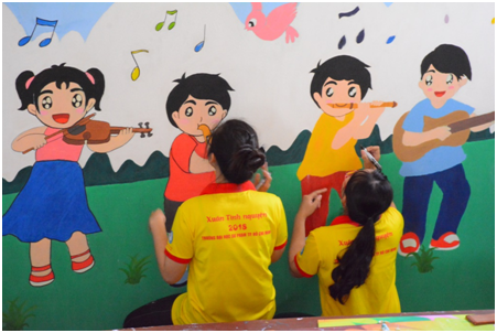 Bắt đầu chiến dịch là công trình sơn vẽ bức tường tại cầu thang Nhà Thiếu nhi quận 7 của các chiến sĩ áo vàng. Bức tường với tổng diện tích gần 90 mét vuông được hoàn thành trong một tuần với đầy đủ các công đoạn như sơn lót, lên nét và tô màu, đồ nét cùng lăn sơn bóng để bức tường được bảo vệ lâu hơn.