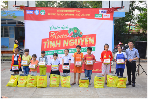 Cuối cùng chính là Lễ Tổng kết chiến dịch Xuân Tình nguyện 2018 trường Đại học Sư phạm TP.HCM cùng Lễ Trao tặng công trình “Thư viện di động” cho trường Tiểu học Tam Thôn Hiệp và chương trình giao lưu văn nghệ.