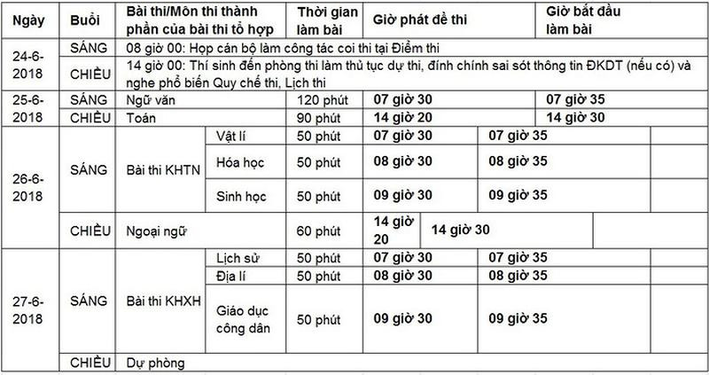 Lịch thi THPT Quốc gia năm 2018.