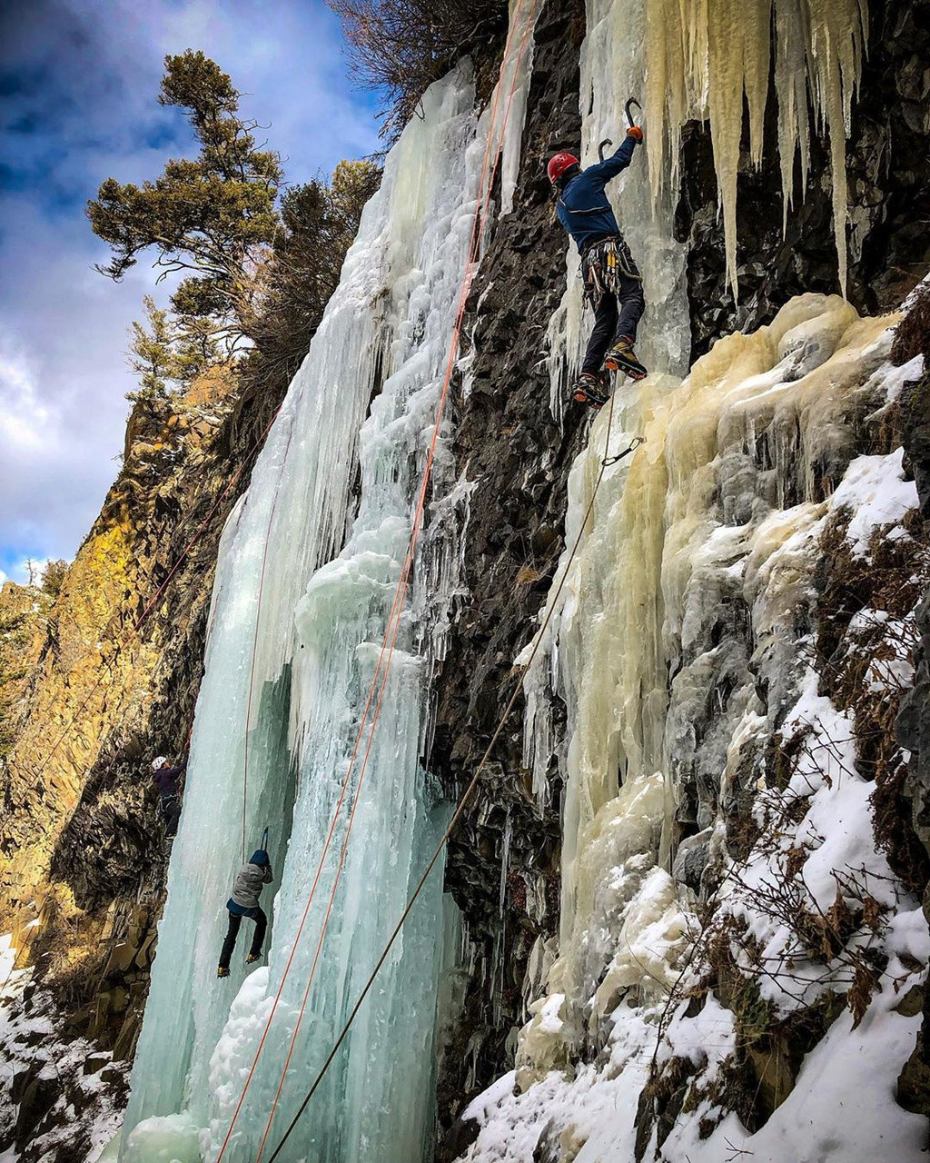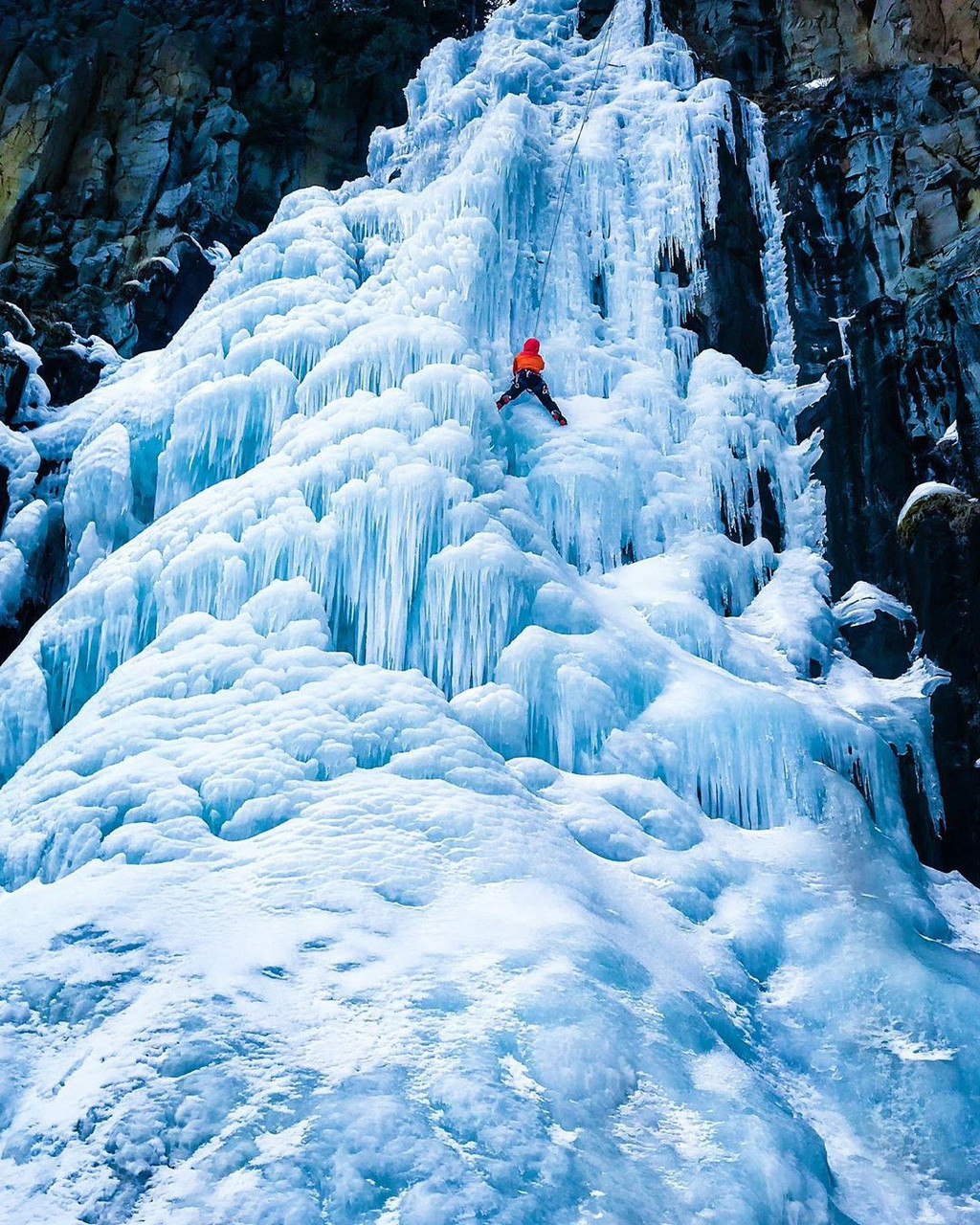 Trong khi, du khách ghé thăm hầu hết thác nước đóng băng trên khắp thế giới chỉ để thưởng thức vẻ lạ thường là đủ. Nhiều ngọn thác là điểm đến phổ biến cho những người bạo gan, muốn thử sức mình với thử thách leo núi băng. Thác nước đóng băng ở hẻm Hyalite là ví dụ điển hình. Người leo núi táo bạo chỉ sử dụng rìu băng và crampon (thiết bị kéo) để bám vào các cột hoặc bức tường băng giá khổng lồ.