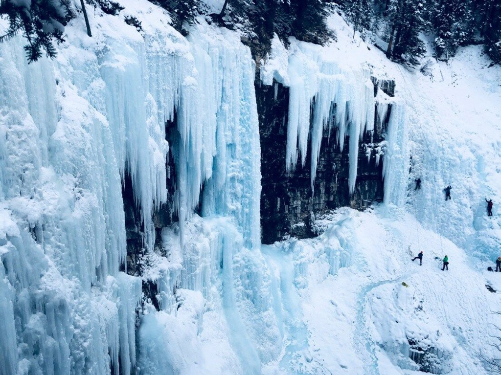 Nổi bật có thể kể đến thác nước cao thứ 2 ở Canada Takakkaw, 2 thác nước đóng băng hóa hẻm Johnston thành màu xanh và trắng pha lê hay thác nước nhiều tầng Tangle… Những tấm áo băng khổng lồ với họa tiết cột trắng xóa xếp chồng ôm lấy vách núi gồ ghề tạo nên cảnh tượng ngoạn mục, đầy mê hoặc.