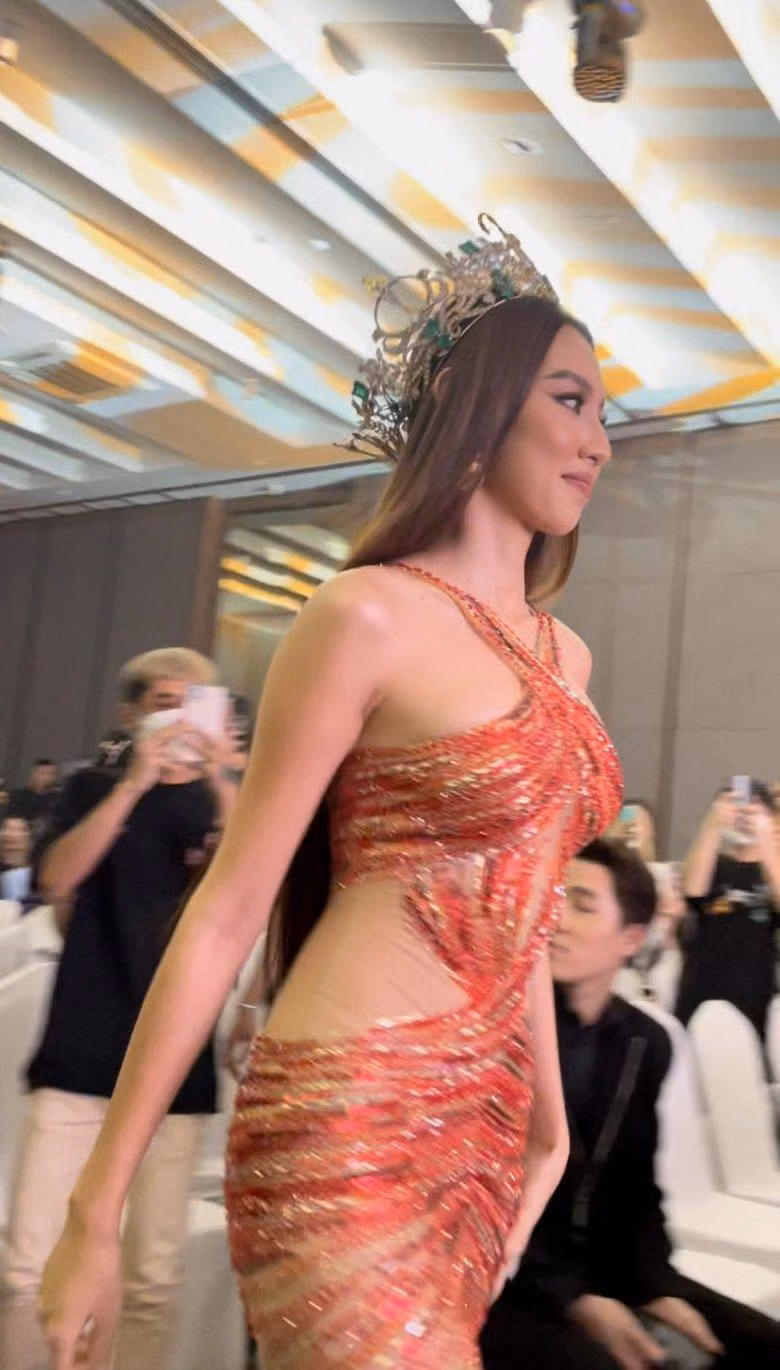 Nhưng gây xôn xao nhất chính là video ghi lại cảnh Hoa hậu Thùy Tiên bước vào khán phòng và được quay bằng camera thường không qua chỉnh sửa. Ấy vậy mà Thùy Tiên vẫn thu hút mọi ánh nhìn với thân hình đẹp như thần Vệ Nữ, mái tóc dài óng mượt và gương mặt thanh tú.