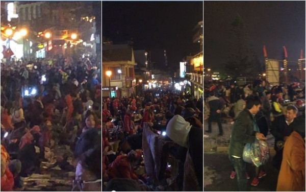 Cụ thể, những hình ảnh này được cho là ghi lại quang cảnh khu vực trung tâm thị trấn Sa Pa đêm 10/03. Hàng nghìn du khách phải lách qua nhau mà di chuyển. Khu vực chợ đêm quanh nhà thờ đá không còn khoảng trống.