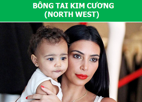 Cặp đôi Kim Kardashian và Kanye West đã dành tặng cho cô con gái North West của mình một đôi bông tai kim cương đáng giá cả một gia tài, khi cô bé vừa tròn 16 tháng tuổi. Được biết, họ phải bỏ ra số tiền lên đến 500.000 USD (hơn 11,6 tỷ VNĐ) để mua món trang sức này cho con gái cưng.