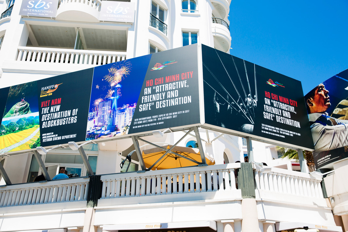 Ở vị trí này, bất cứ quan khách nào cũng sẽ nhìn thấy hình ảnh du lịch TP.HCM và điện ảnh Việt Nam khi đứng trên thảm đỏ LHP Cannes từ phía đối diện ở tòa lâu đài Palais des Festivals.