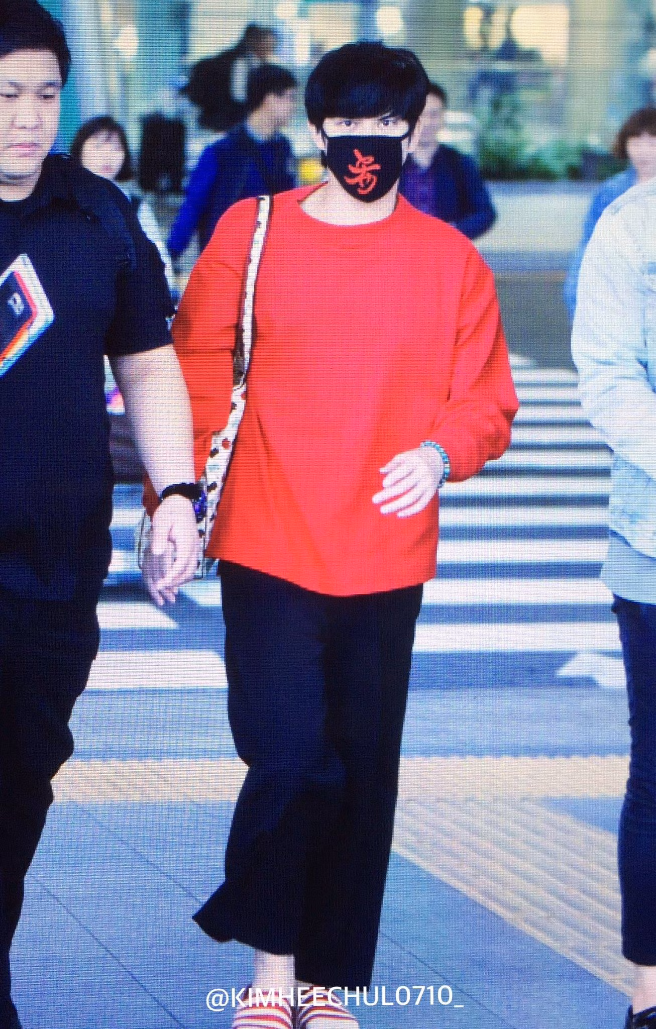 Tất nhiên là vẫn không thể thiếu được khẩu trang đen có chữ Hy (trong Hy Triệt - tên tiếng Trung của Hee Chul) và một lần nữa lại là chiếc quần họa tiết chấm bi ưa thích.