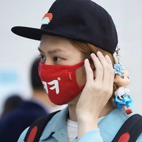 Bộ đồ này đã được phối hợp hết sức hài hòa từ áo len, khẩu trang đến túi xách cho đến khi có sực xuất hiện của… một đôi dép lê.