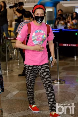 Nếu nhìn bức ảnh này mà bạn đã vội cho rằng thời trang sân bay của Hee Chul vô cùng trẻ trung và năng động thì đó quả thật là một sai lầm.